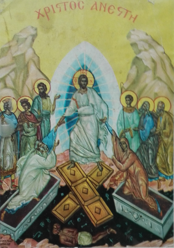 (It was found written on the back of the following Icon of the Resurrection [it comes from the iconography workshop of the monastery of Archbishop Afxentios], which is currently located in the Holy Church of the Holy Trinity in Santiago. Thank you Fr. Roberto León-Ramírez for the discovery)